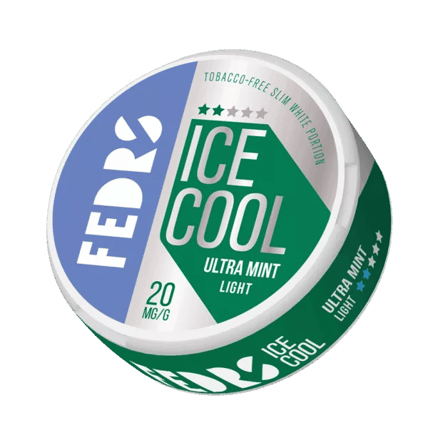 FEDRS Ice Cool Light Ultra Mint delivers a pronounced mint taste with a 10 mg nicotine content per pouch, offering a moderate nicotine effect for users who prefer a smoother experience. Each slim pouch provides a refreshing mint profile that is more intense than standard mint but without the extreme chill of Freeze Mint.